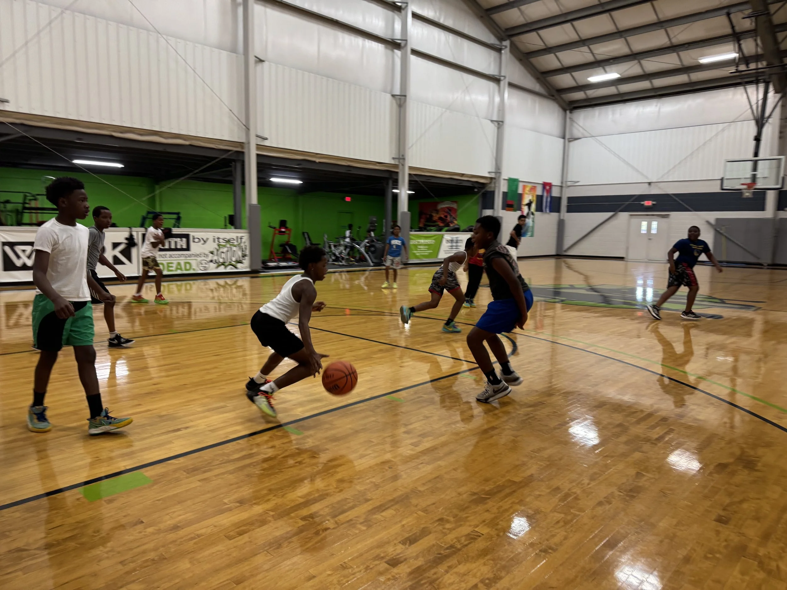 Beyond basketball, our facility includes a fully equipped weight room featuring treadmills, stationary bikes, free weights, bench presses, and a variety of strength-training machines. These resources are designed to improve overall physical fitness and build strength, supporting holistic athletic development.