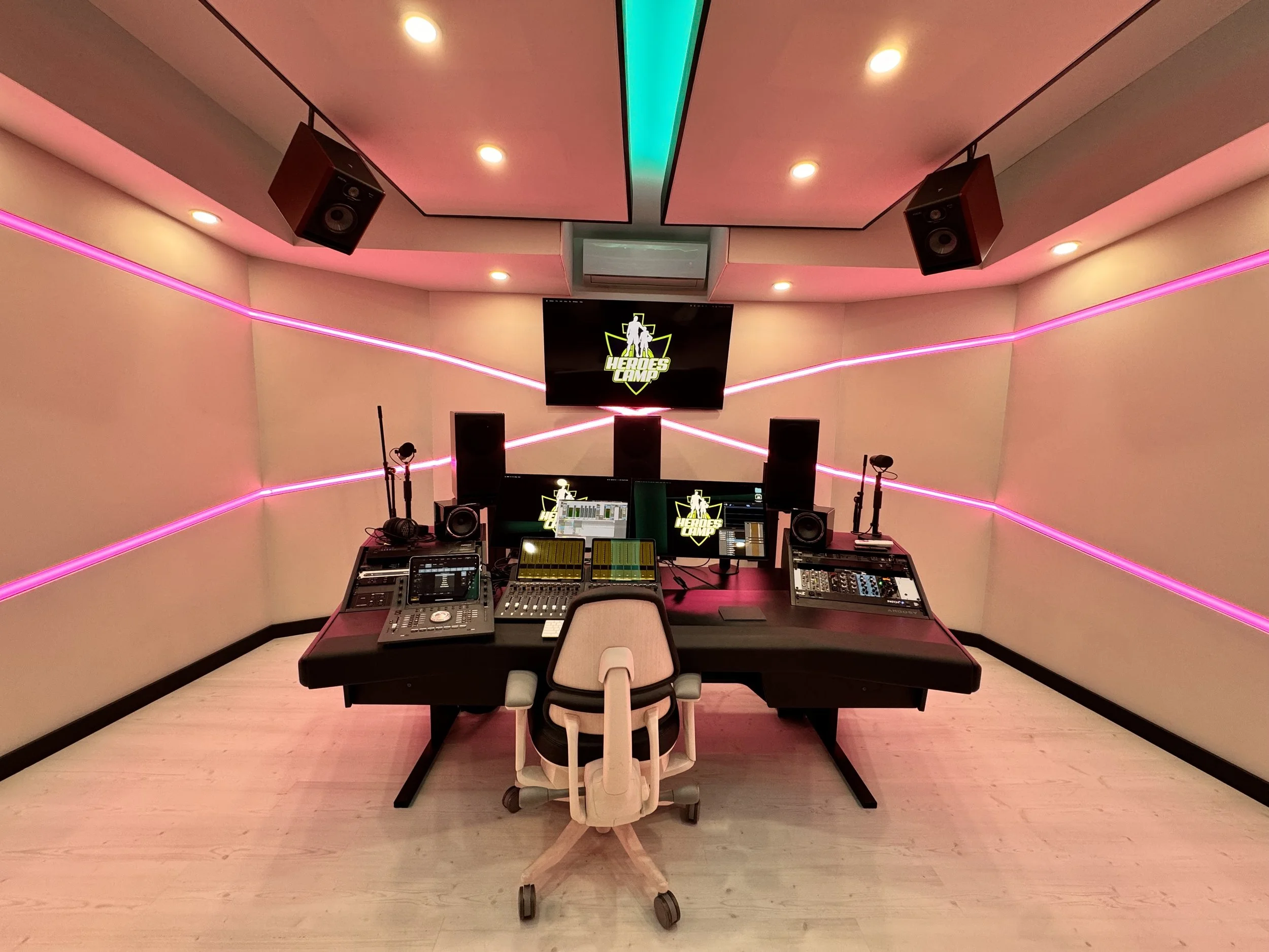 The studio itself is far from ordinary. Crafted by world-renowned engineer Gavin Haverstick, this Dolby Atmos-equipped space captures all student-led music produced in the gym each Saturday morning with exceptional clarity and depth. This integration of artistic expression and cutting-edge technology embodies the spirit of development in body, soul, and spirit that defines Heroes Camp.